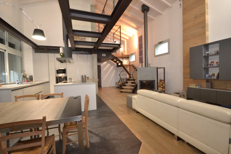 PROGETTI Superfici e Design La pavimentazione e la scala di questo loft è stata realizzata con parquet oliato Boschi di Fiemme linea Argento della ditta Fiemme 3000. Nella zona pranzo è stato utilizzato un pavimento in gres porcellanato di grande formato della ditta Rex, un marchio del gruppo Florim.Nel bagno della zona giorno, abbiamo utilizzato…