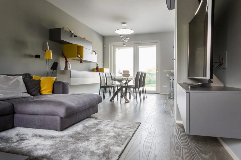 Appartamento con pavimentazione in legno della Cadorin Group, colore Carta da Zucchero della larghezza di cm.20.